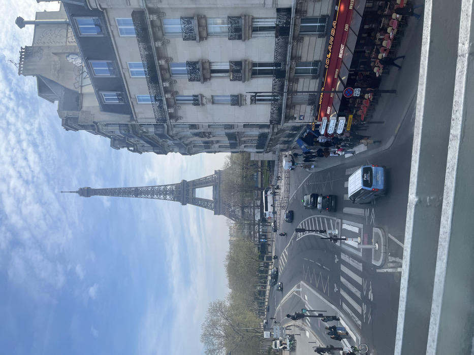 - "This image depicts a bustling urban scene in Paris, France, specifically captured from an elevated vantage point, likely a bridge or overpass, along the Quai Branly, looking towards the Eiffel Tower" by FM-WnOQx1, licensed under CC BY 4.0