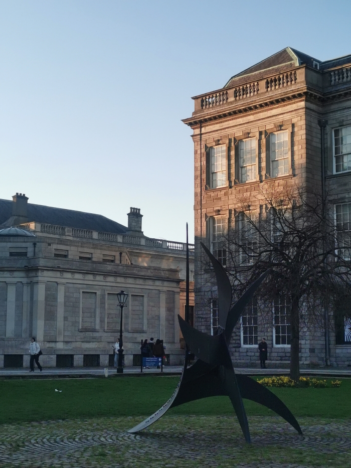 - "The image displays an outdoor scene within Fellows' Square, Trinity College Dublin, Dublin, Ireland, illuminated by golden hour light under a clear, pale blue sky" by FM-nQFzM2, licensed under CC BY 4.0