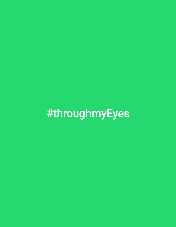 The image is a digital graphic composed of a uniform, solid green background. Centered horizontally and vertically on this background is the white text "#throughmyEyes" in a sans-serif typeface. No discernible people, subjects, objects, actions, interactions, or environmental details are depicted within the image. The graphic contains no visual information or elements that would indicate a specific physical location, such as the city of Ciwalen, Indonesia.