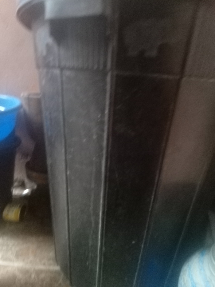 - "A tall, black, octagonal trash can dominates the view" by FM-9IDUu1, licensed under CC BY 4.0