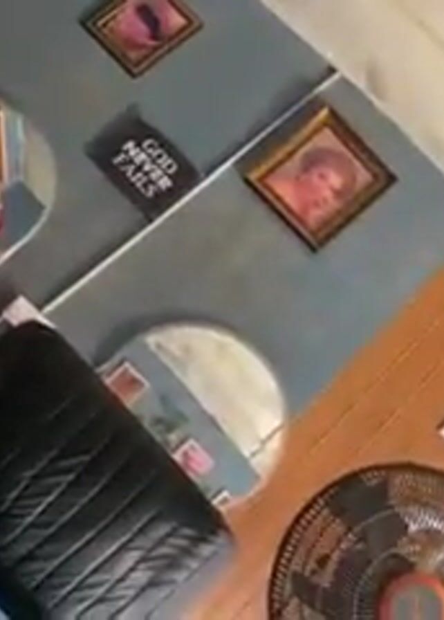The camera pans in a small room, possibly a hair salon or beauty parlor