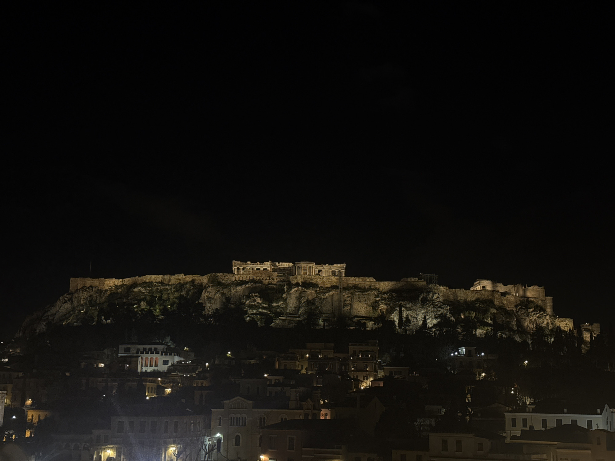 - "The image displays a nocturnal, wide-angle view of the Acropolis in Athens, Greece, situated atop a rocky hill and prominently illuminated against a dark, unclouded sky" by FM-d9cGo1, licensed under CC BY 4.0