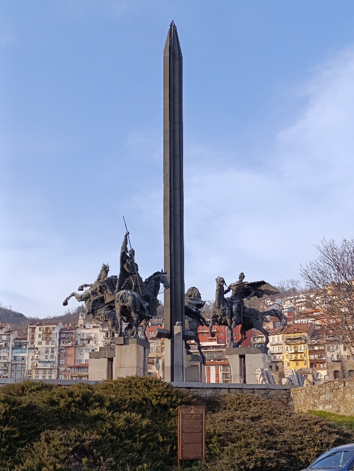 - "An outdoor, eye-level shot captures the Monument to the Asen Dynasty in Veliko Tarnovo, Bulgaria, under a clear blue sky" by FM-DciEm2, licensed under CC BY 4.0