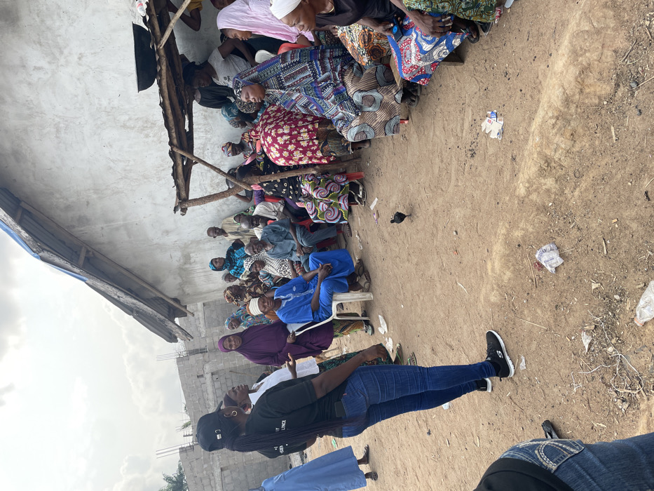 An outdoor community gathering is depicted in Osara Gada, Nigeria