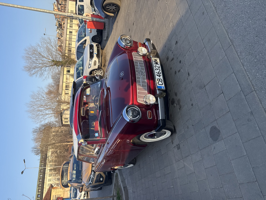 - "The image displays a dark red (maroon) Trabant 601 sedan, prominently parked on a gray interlocking concrete paver surface" by FM-QK5pm1, licensed under CC BY 4.0