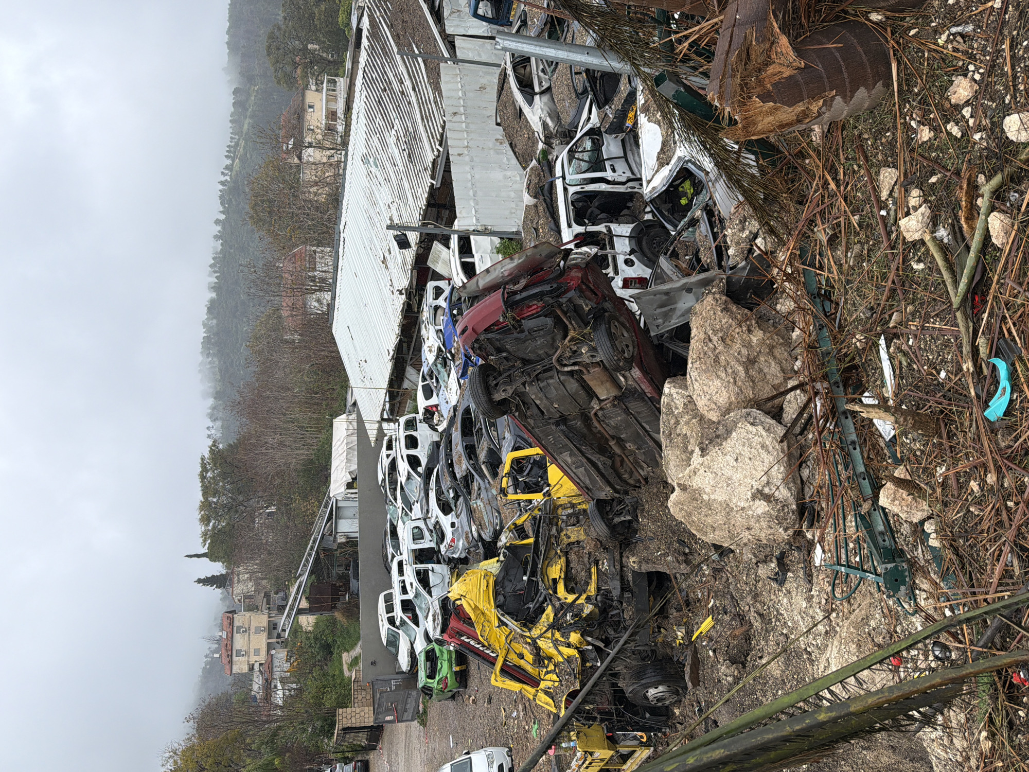 The image depicts a junkyard in Mate Yehuda Regional Council, Israel