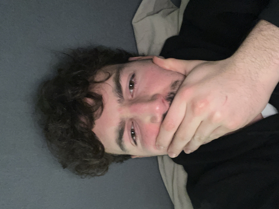 - "A person with dark curly hair lies on a gray surface, possibly a bed or couch" by FM-z4cUR2, licensed under CC BY 4.0