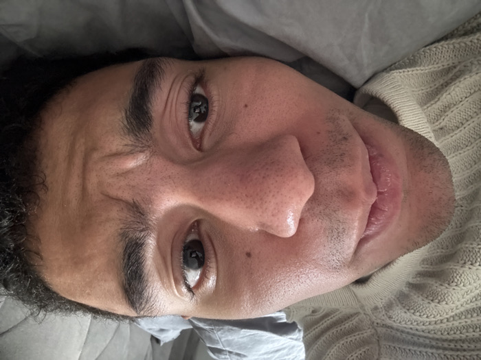 - "A close-up, overhead photograph, rotated approximately 90 degrees clockwise, captures a male subject lying down" by FM-nUt6m1, licensed under CC BY 4.0