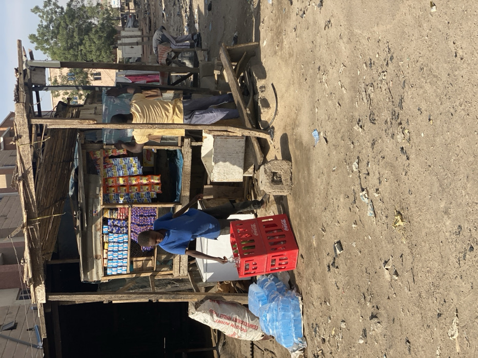 The image portrays an outdoor commercial scene in Sabon Gari East, Nigeria