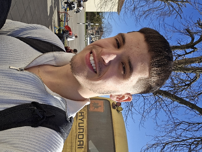 - "The image presents a headshot of a young male, approximately 18-25 years old, set outdoors in what appears to be a schoolyard or playground in Pavlikeni, Bulgaria" by FM-4wbx12, licensed under CC BY 4.0