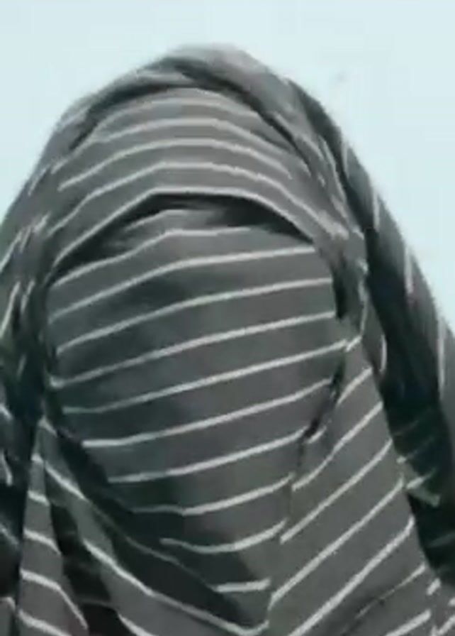 person completely covered in a black and white striped cloth