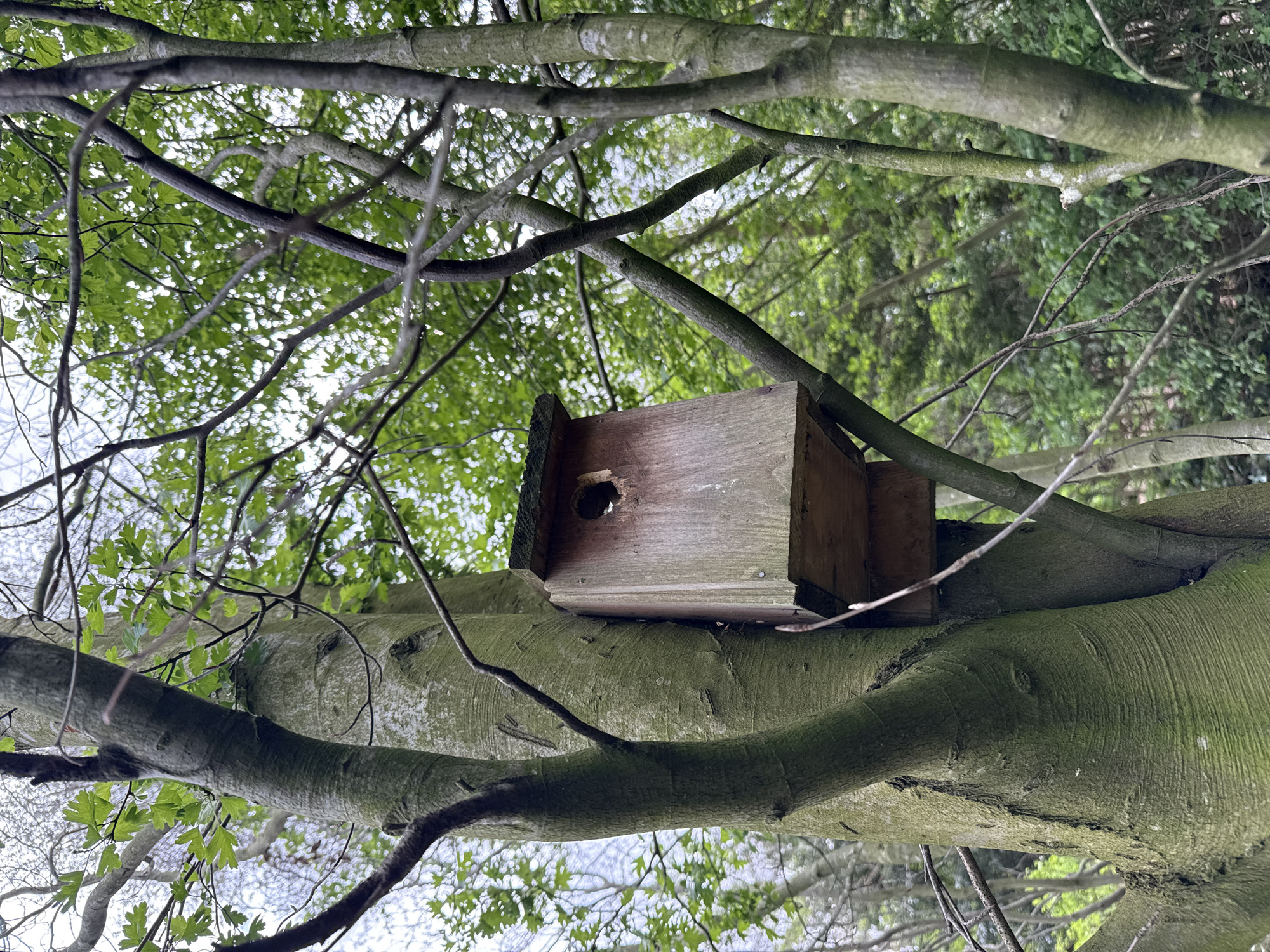- "A wooden birdhouse is mounted on a thick tree branch" by FM-oH6mZ2, licensed under CC BY 4.0