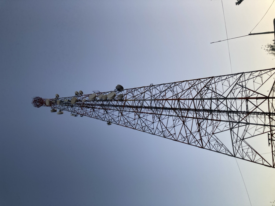 - "tall, red and grey metal radio tower silhouetted against a blue sky" by FM-7ELnX2, licensed under CC BY 4.0