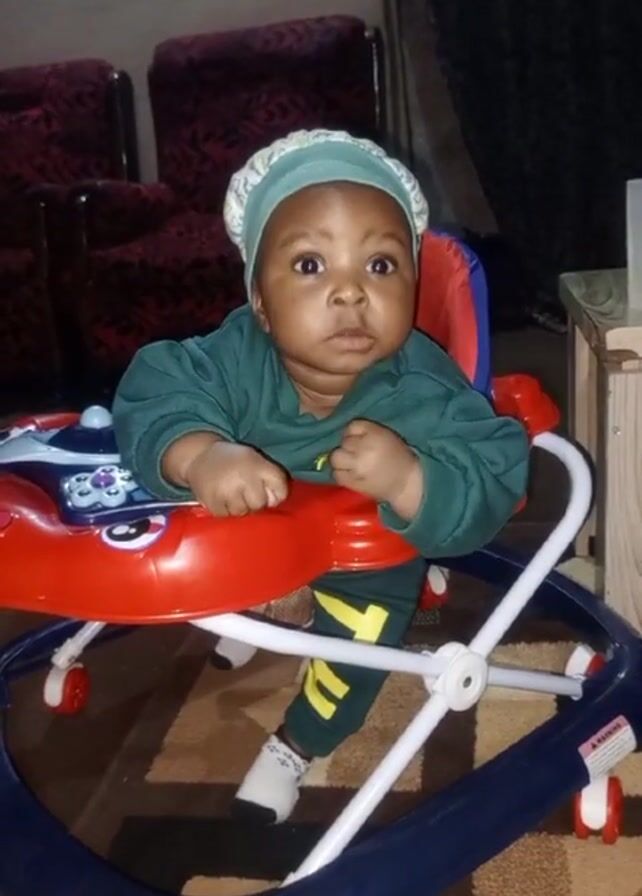 - "A baby, wearing a green long-sleeved shirt, patterned green leggings, white socks and a light blue bonnet, is sitting in a brightly colored baby walker" by FM-HxAtG3, licensed under CC BY 4.0