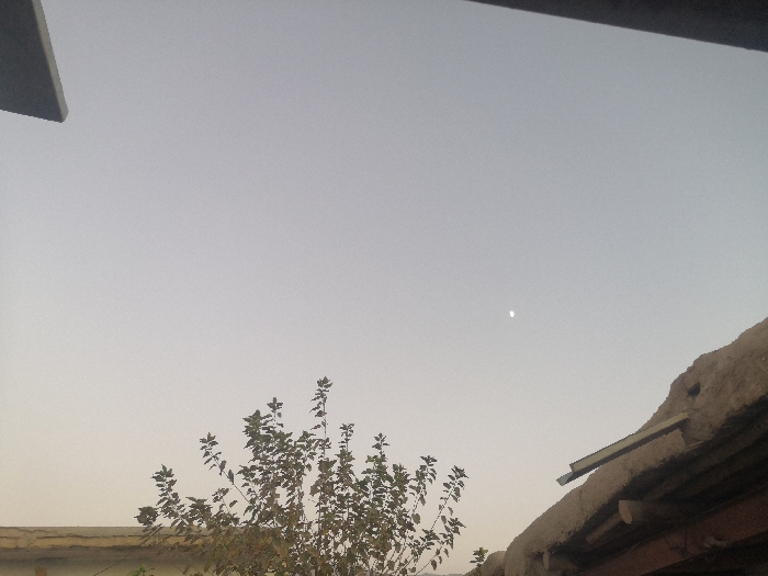 - "The image captures an outdoor scene in Akhundzadakhail, Pakistan, under a light grey, hazy sky where a small white crescent moon is visible in the upper right quadrant" by FM-25YsE2, licensed under CC BY 4.0