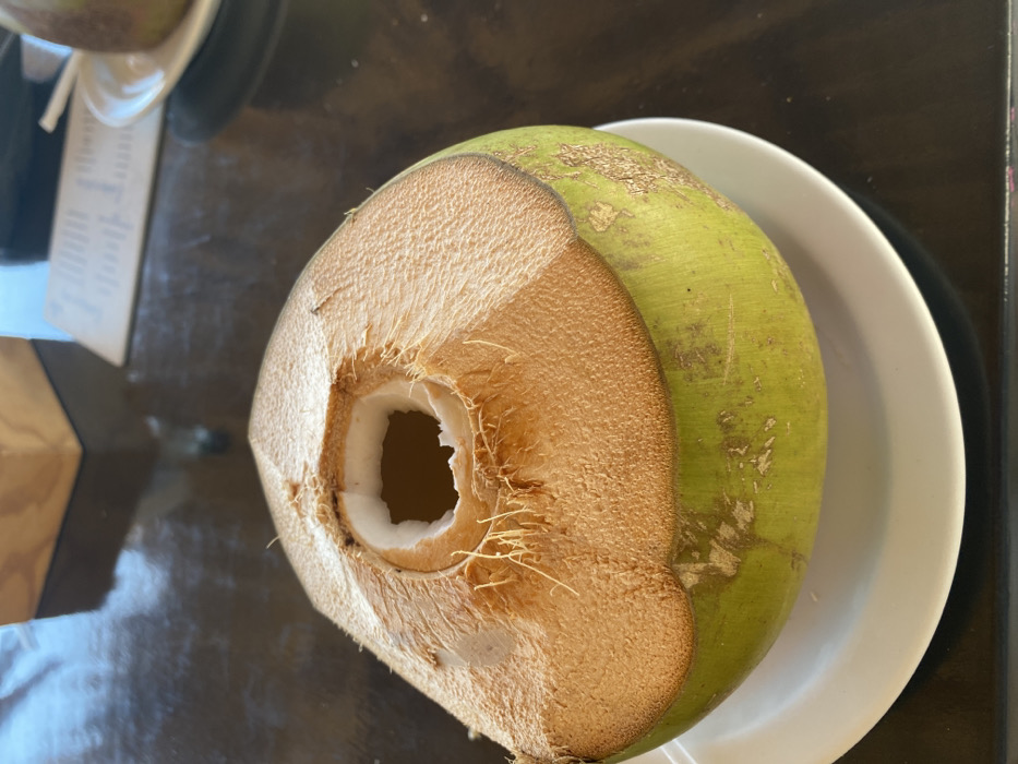 - "A green coconut sits on a white plate against a dark, possibly wooden surface" by FM-tWx7o1, licensed under CC BY 4.0