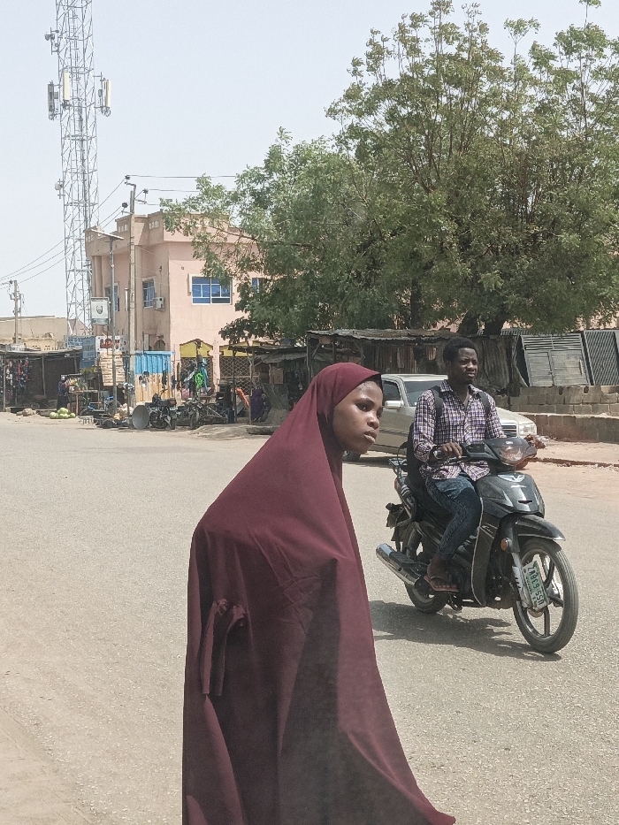 The image depicts a daytime street scene in Hotoro South, Nigeria