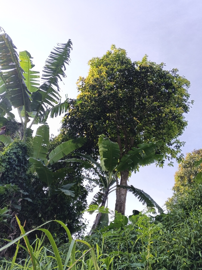 - "Lush tropical vegetation fills the frame, featuring tall banana trees with broad, frayed leaves reaching upwards" by FM-mx9LC3, licensed under CC BY 4.0