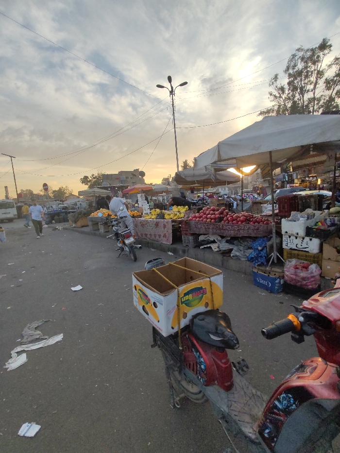 - "The image depicts an active outdoor market street in Al-Qadam Municipality, Syria, illuminated by the low sun under a partially cloudy sky" by FM-JULMO2, licensed under CC BY 4.0