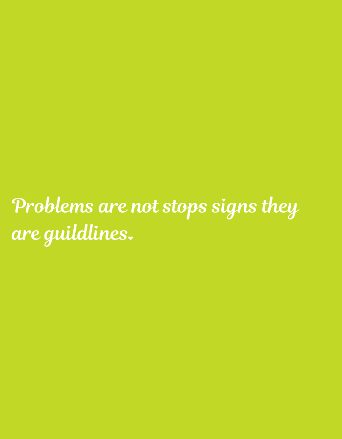 The image displays white, italicized text centered on a solid lime green background. The text reads: "Problems are not stops signs they are guildlines." The word "guildlines" is misspelled. No other subjects, objects, people, actions, or interactions are present in the scene. The location is Unknown, Unknown.