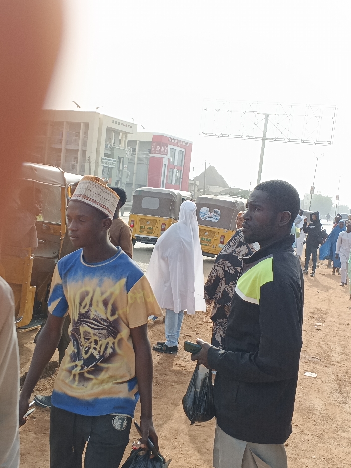 The scene depicts an outdoor urban or semi-urban environment in Gobirawa, Nigeria, observed during daylight