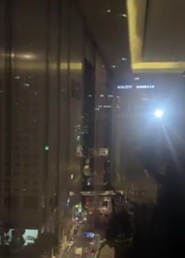 The video opens with a view from a high-rise window at night, overlooking a busy city street with traffic