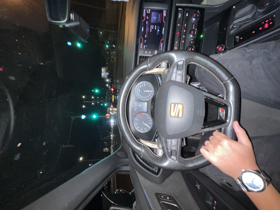 - "A night-time photograph taken from the driver's seat of a SEAT brand vehicle, stopped at an urban intersection" by FM-jZBP83, licensed under CC BY 4.0