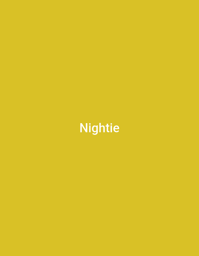 A solid, mustard yellow background dominates the frame. Centered, the word "Nightie" appears in a clean, sans-serif font, colored white. The text is relatively small in proportion to the vastness of the yellow field, drawing focus due to the contrast.
