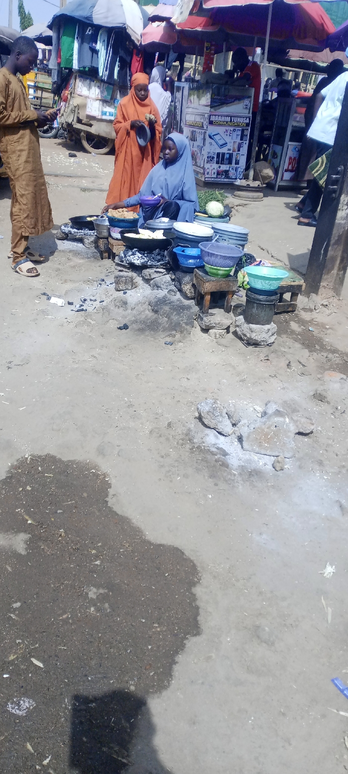 - "A street food vendor in a light blue hijab sits behind frying pans on makeshift stoves of bricks and wood" by FM-KAsE03, licensed under CC BY 4.0