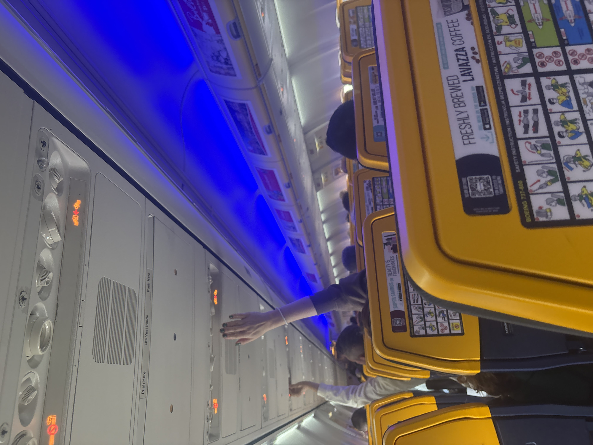 - "interior of an airplane cabin, likely on a Boeing 737-800 based on the safety instruction card on the seatback" by FM-F0e8J2, licensed under CC BY 4.0