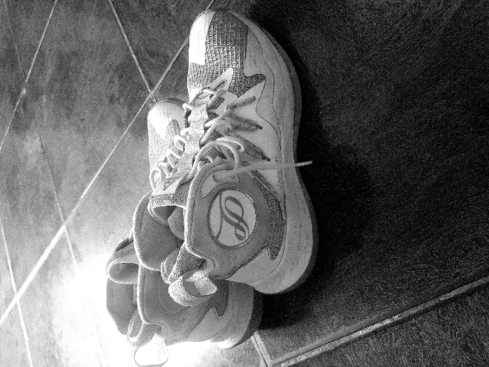 - "A pair of light-colored athletic shoes are positioned on a tiled floor and an adjacent dark, textured mat" by FM-8ragH2, licensed under CC BY 4.0