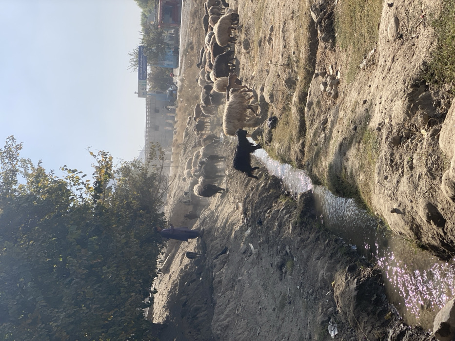 - "A flock of sheep traverses a rugged landscape with a narrow water channel running through it" by FM-B5wmg2, licensed under CC BY 4.0