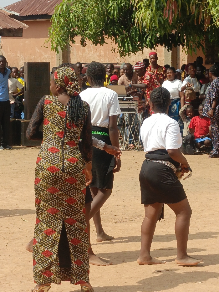 The image depicts an outdoor cultural event in Akwanga, Nigeria, under daylight conditions