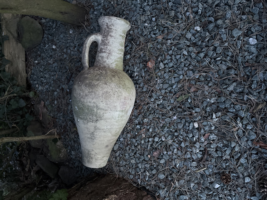 - "An old, weathered amphora-style pot lies horizontally on a bed of dark grey angular gravel" by FM-RPcgE2, licensed under CC BY 4.0