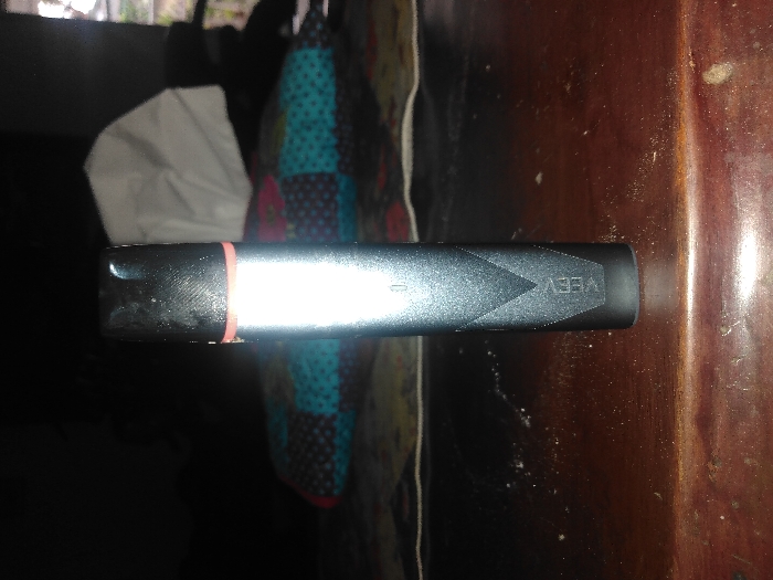 - "The image displays a dark-colored, cylindrical VEEV branded electronic vaping device standing vertically on a dark, polished wooden surface" by FM-9dzTh2, licensed under CC BY 4.0