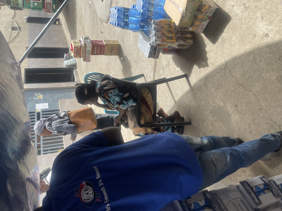 This image depicts an outdoor commercial scene in Jos, Nigeria, under direct sunlight and partial shade provided by a blue tarp