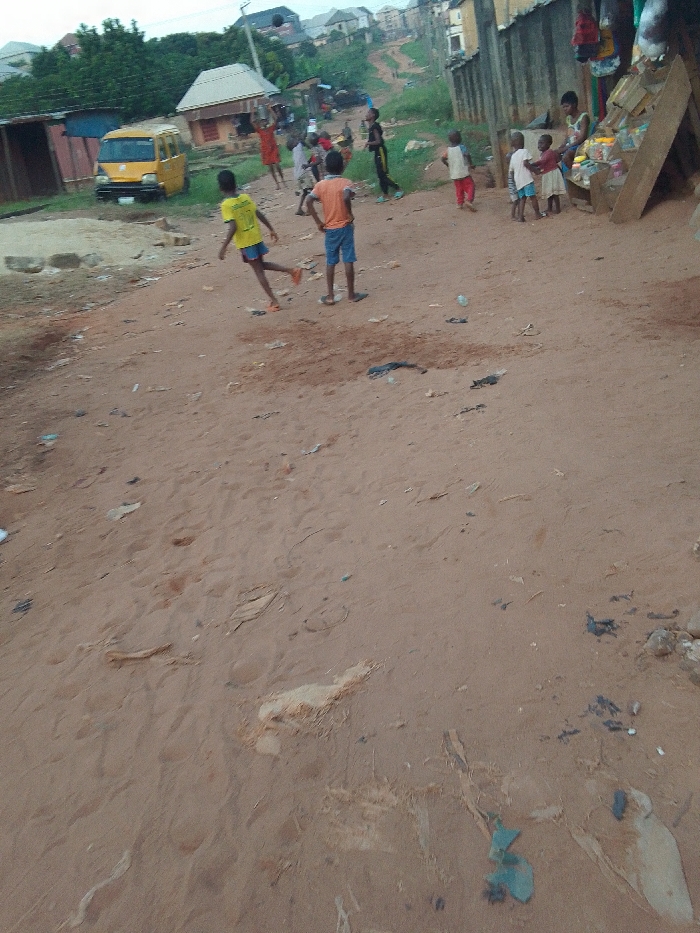 - "The image displays an unpaved, reddish-brown dirt street in a residential area of Unknown, Unknown, under an overcast sky" by FM-5Fe3Y2, licensed under CC BY 4.0