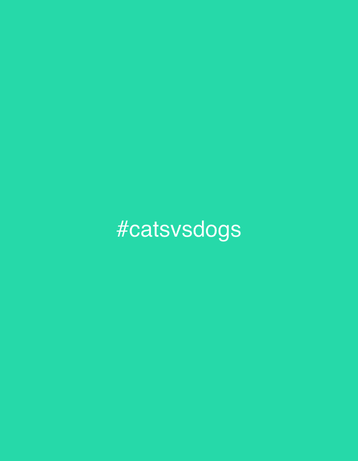 The image displays a solid, uniform teal-green background. Centered horizontally and vertically on this background is the white, sans-serif text string "#catsvsdogs". No discernible individuals, subjects, objects other than the text, actions, interactions, or environmental features are present. The image provides no visual information to determine a specific geographical location, including the city of Kozloduy, Bulgaria.