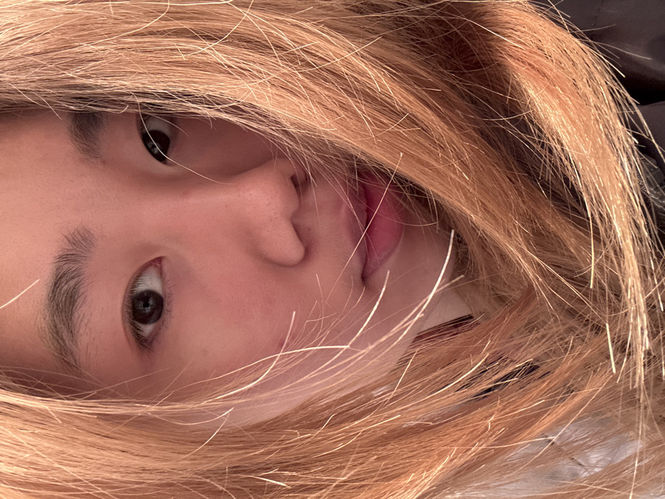 - "A close-up photograph shows a person's face mostly obscured by blonde hair" by FM-Pjg2K3, licensed under CC BY 4.0