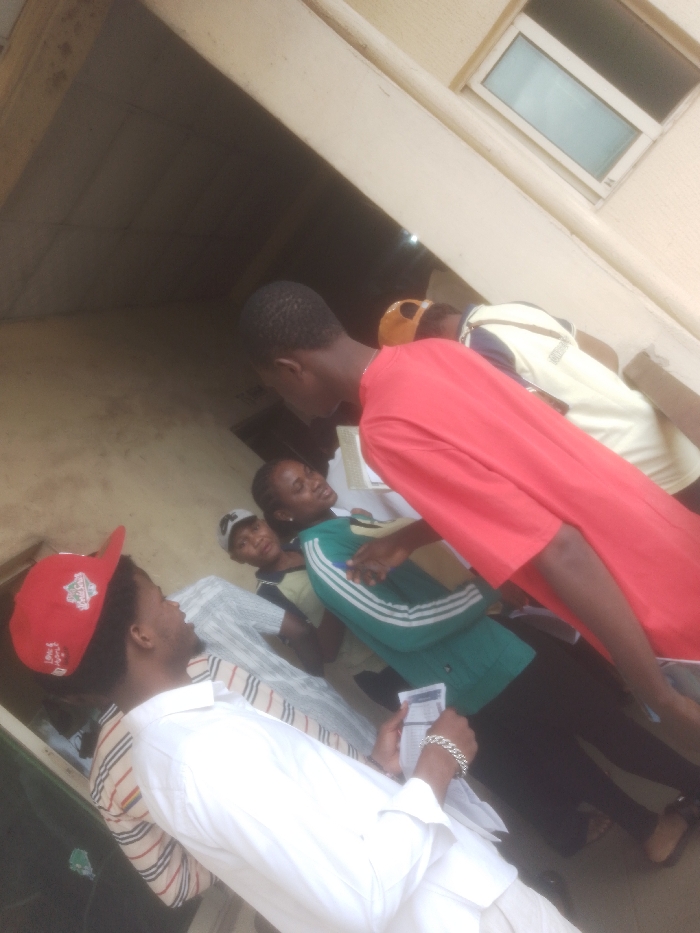 The image, captured on a diagonal axis, depicts a group of five individuals, primarily African, gathered in what appears to be a partially enclosed or indoor setting in Nsugbe, Nigeria