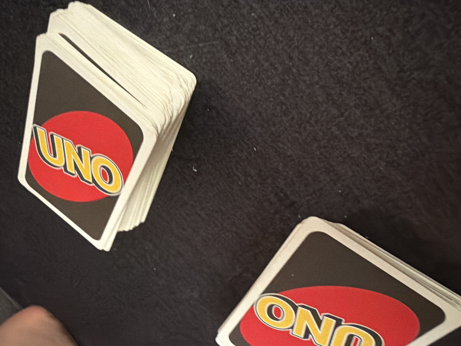 - "The image displays an indoor scene in Sandanski, Bulgaria, focused on two stacks of UNO card game cards positioned on a dark, textured surface, likely a table or cloth" by FM-NyWZ82, licensed under CC BY 4.0