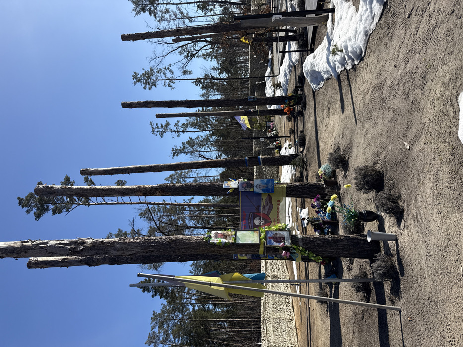 - "This image depicts an outdoor memorial site in Moshchun, Ukraine, under a clear blue sky" by FM-HJIgS2, licensed under CC BY 4.0