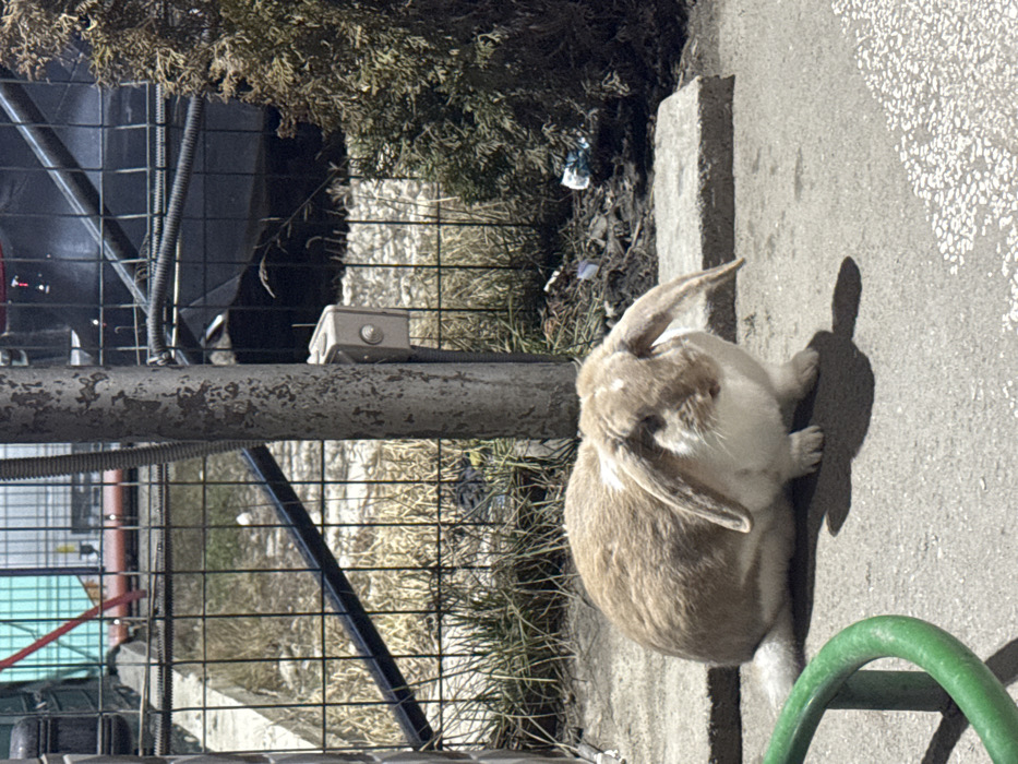 - "In Velingrad, Bulgaria, an outdoor scene depicts a single, light brown and white lop-eared rabbit positioned centrally on a concrete surface" by FM-tZgMG3, licensed under CC BY 4.0