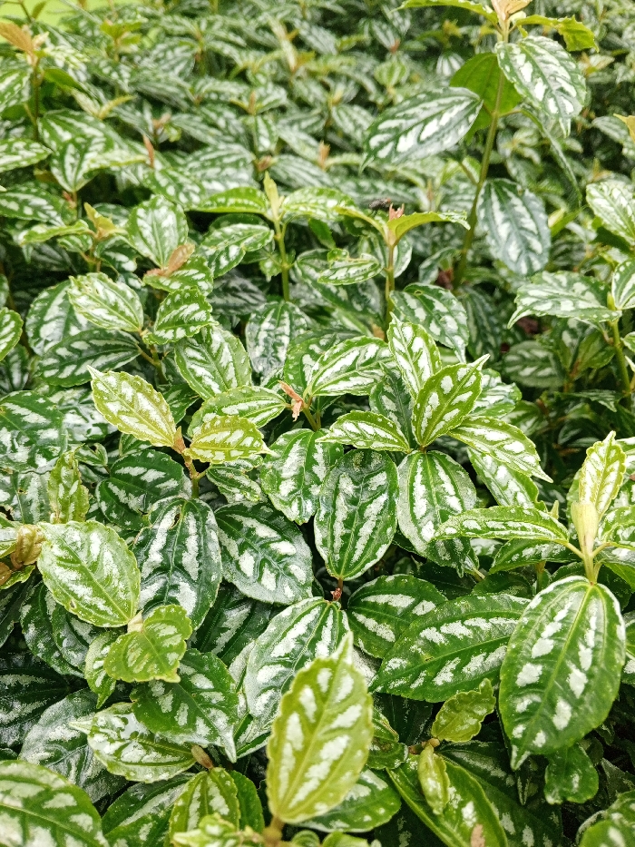 - "The image displays a close-up of dense, variegated plant foliage, likely *Pilea cadierei* (Aluminum Plant), situated in Calbayog, Philippines" by FM-LiKrb2, licensed under CC BY 4.0