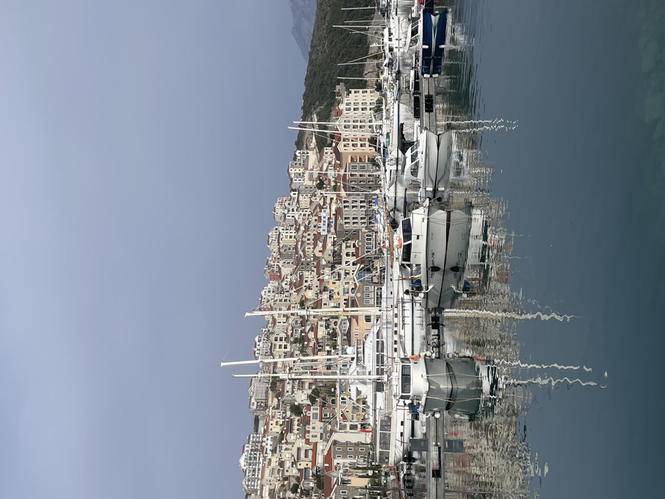 - "The image displays a marina and a hillside settlement within Radovići, Montenegro, under an overcast sky" by FM-srcYD2, licensed under CC BY 4.0