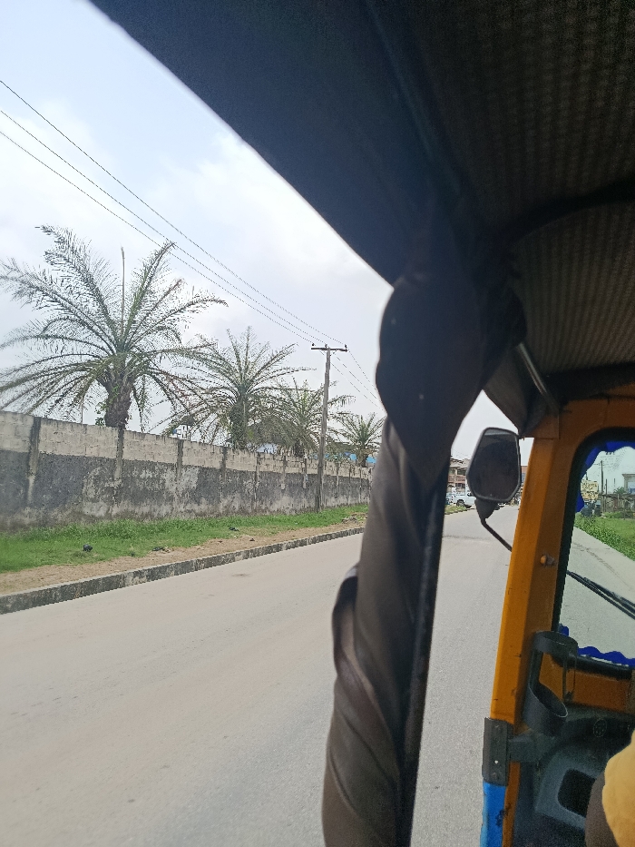 - "The image depicts a street scene in Warri, Nigeria, viewed from the interior of a moving tricycle taxi (Keke Napep)" by FM-unnnr2, licensed under CC BY 4.0