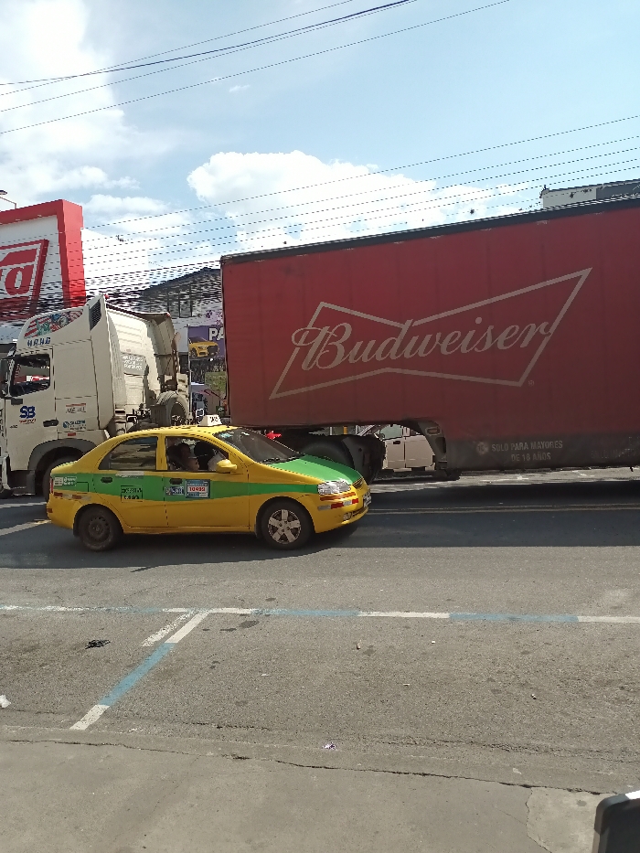 - "A yellow and green taxi sits on a road beside a large Budweiser truck" by FM-GeBdt2, licensed under CC BY 4.0