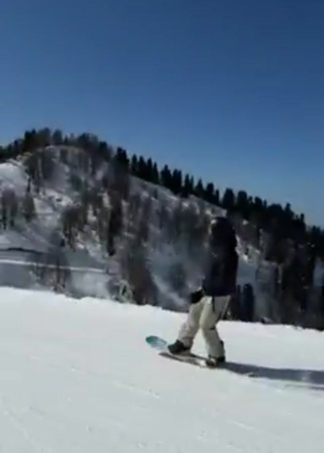 person snowboarding down a snow-covered slope on a sunny day
