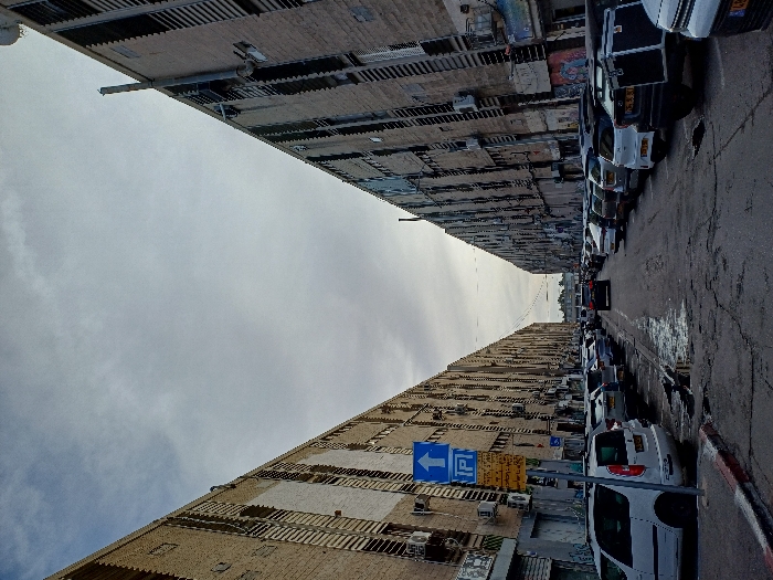 - "The scene depicts a long, narrow urban street in Tel Aviv, Israel, flanked by two multi-story, light-brown brick or panel buildings under an overcast sky" by FM-WYrTc2, licensed under CC BY 4.0