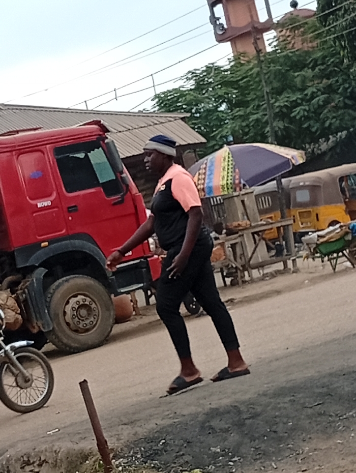 The image depicts an outdoor street scene in Zaria, Nigeria, under an overcast sky